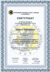 Z dumą informujemy, że trener Sebastian Sikora w dniu wczorajszym tj. 31 maja 2015 r. ukończył z wynikiem pozytywnym Kurs UEFA A organizowany przez Pomorski Związek Piłki Nożnej.