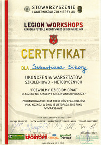 W dniu 15 listopada 2015 roku trener Sebastian Sikora uczestniczył w warsztatach szkoleniowo-metodycznych "Pozwólmy dzieciom grać", zorganizowanych w Warszawie dla 50 trenerów i pasjonatów piłki nożnej z całej Polski. Zajęcia teoretyczne i praktyczne okazały się cennym źródłem informacji o metodyce szkolenia dzieci i zasadach działania Akademii Piłkarskiej oraz inspiracją do podejmowania nowych wyzwań!